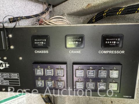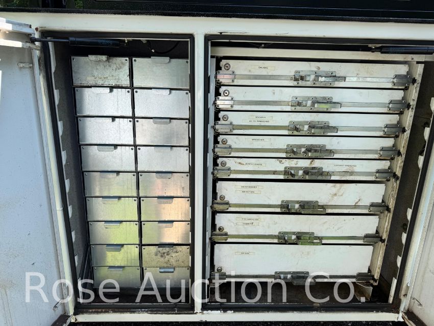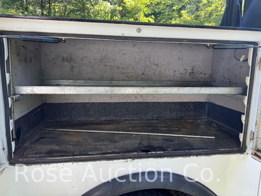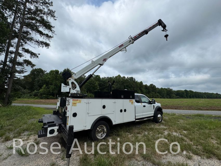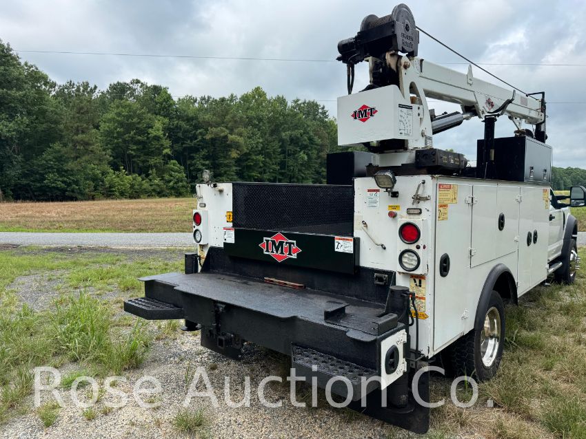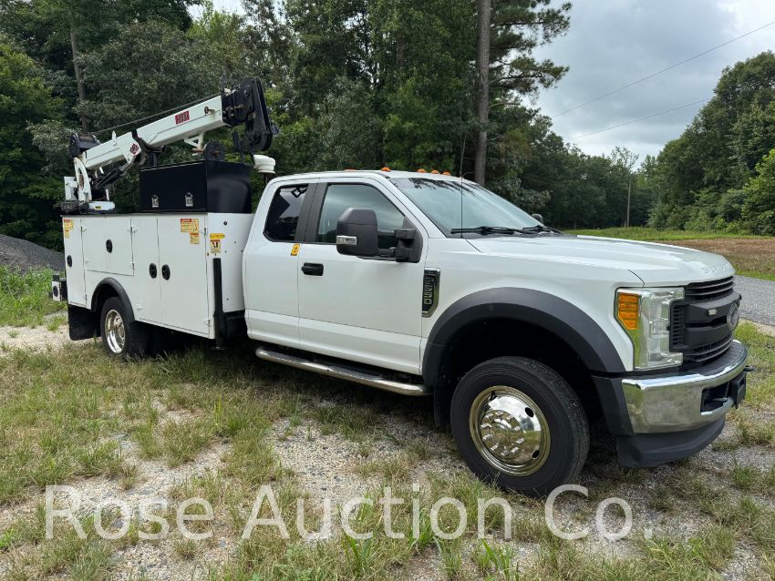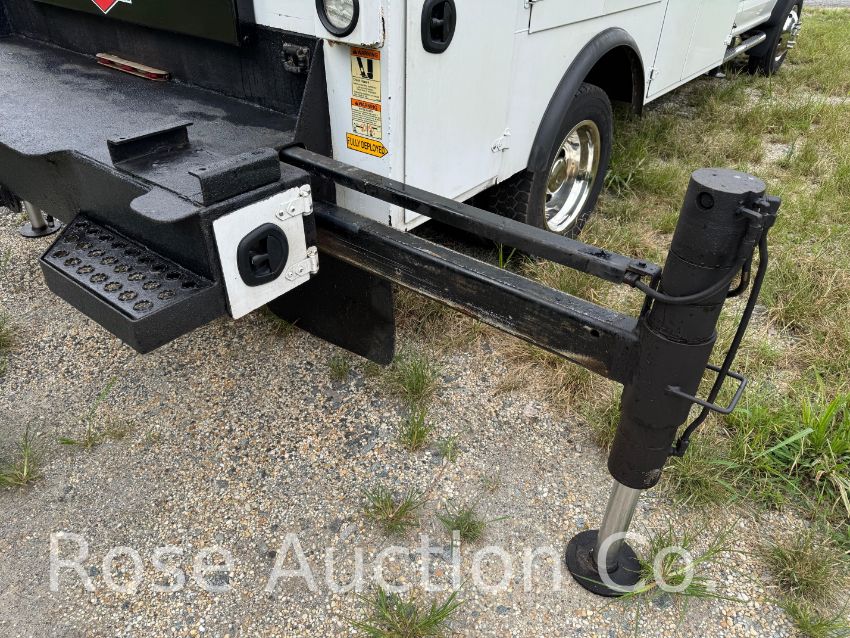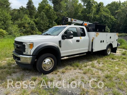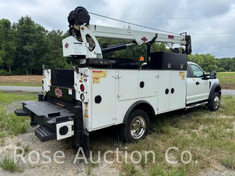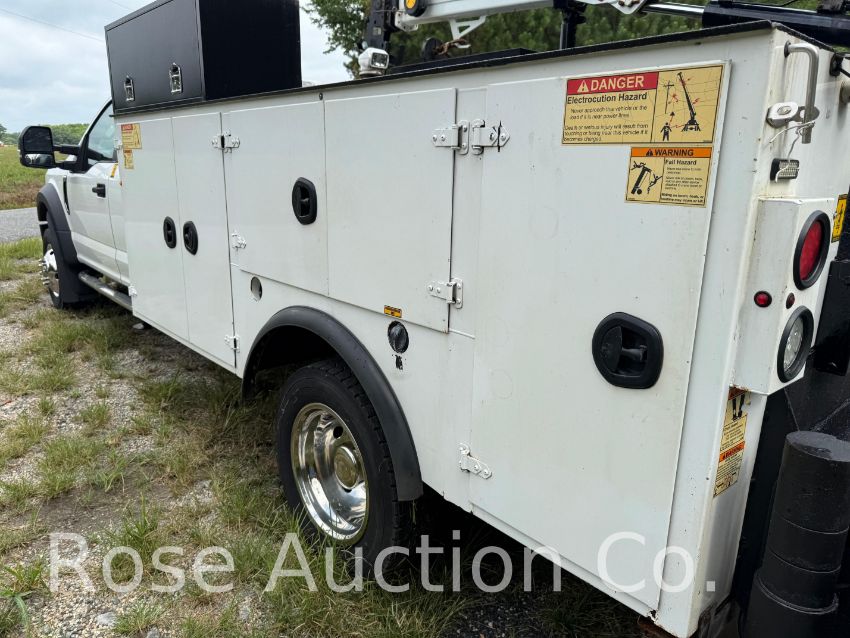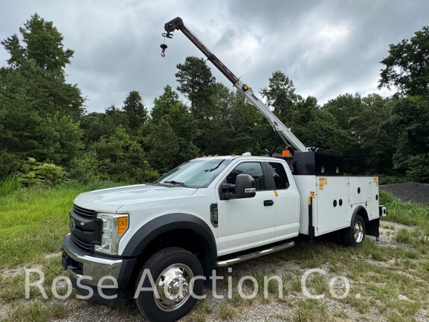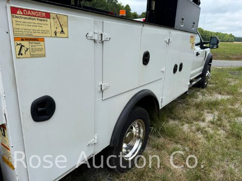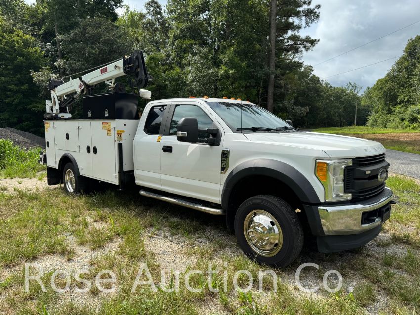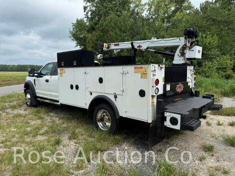 2017 Ford F550 Ext cab 4x4 mechanics truck, (206,741 miles) 6.8 gas engine, 6000 crane, wireless remote, PTO, IMT 11ft Dom 1 body with work bench, vice, hydraulic outriggers, VMAC 150 under hood engine driven air compressor (Runs, Drives, & Operates as it should) (Air compress builds air, Crane and outriggers operate) A/C blows cold